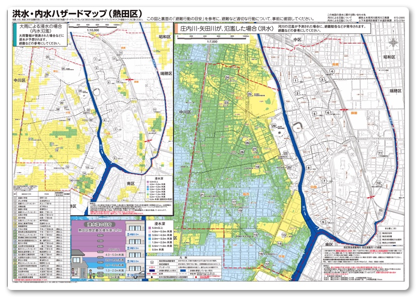 なお、ハザードマップは「住んでる地区 ハザードマップ」で検索すると出てきます。例えば、「名古屋市 ハザードマップ」で検索すると「名古屋市 暮らしの情報 洪水・内水ハザードマップ」に各区のハザードマップが掲載されています。ワタクシが住んでいる熱田区は堀川から西側はほぼ浸水しますが熱田神宮から東側はほぼ浸水しません。ちなみにワタクシの住まいは北東側なので余程の津波や大豪雨が来ない限り浸水することはなく、さらに三階なので住居が浸かる可能性はゼロ。駐車場の自家用車は多少浸水の可能性はあるかもしれませんが…。そういったリスクも踏まえて住居を選んでいます。
