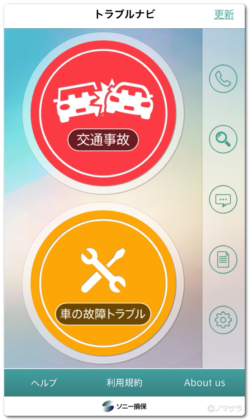 救援要請はアプリから行うことができます。会員番号などはすでに登録してありアプリと連携されています。交通事故か車の故障(トラブル)かを選択して内容を選ぶだけ。場所はGPSで位置を特定してくれますので住所を入力する必要はありません。