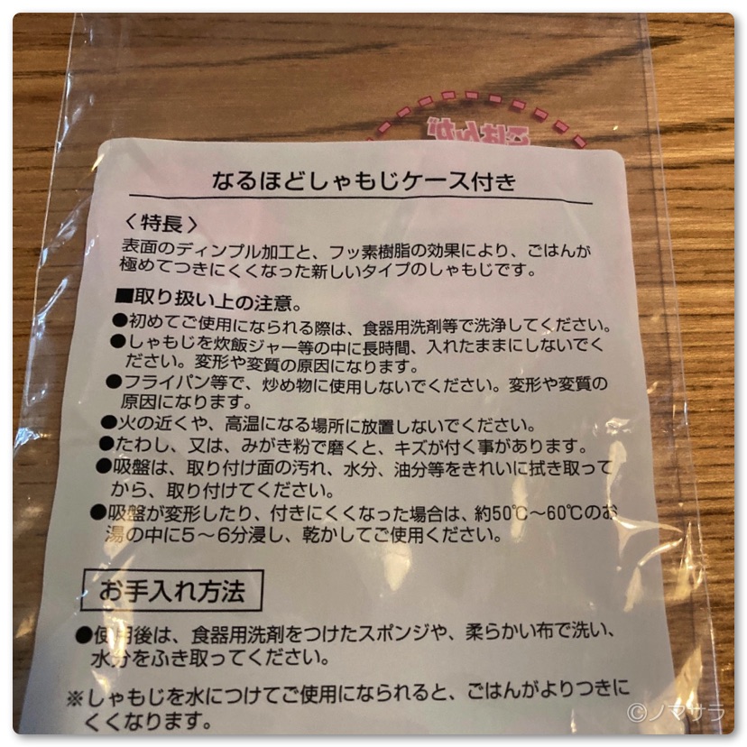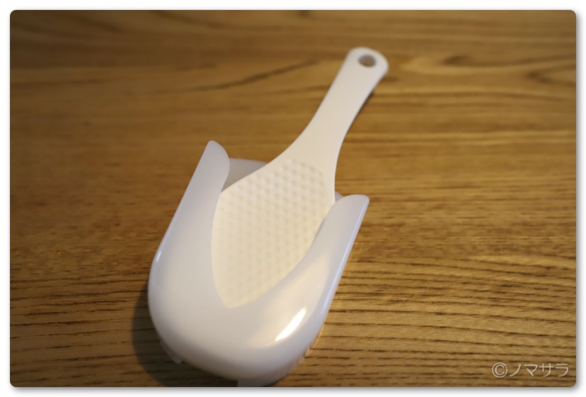 そこでGoogleで検索して調べたところ、いくつか情報が出てきて、その中で一番良さそうだったのが、セリアで販売している「ごはんがつきにくい なるほどしゃもじ ケース付き」。