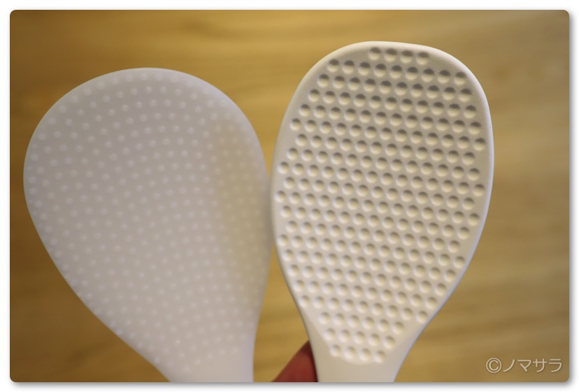 左側が今まで使っていた凸型モールドのしゃもじ、右側が新たに購入したセリアの凹型モールドのしゃもじ。