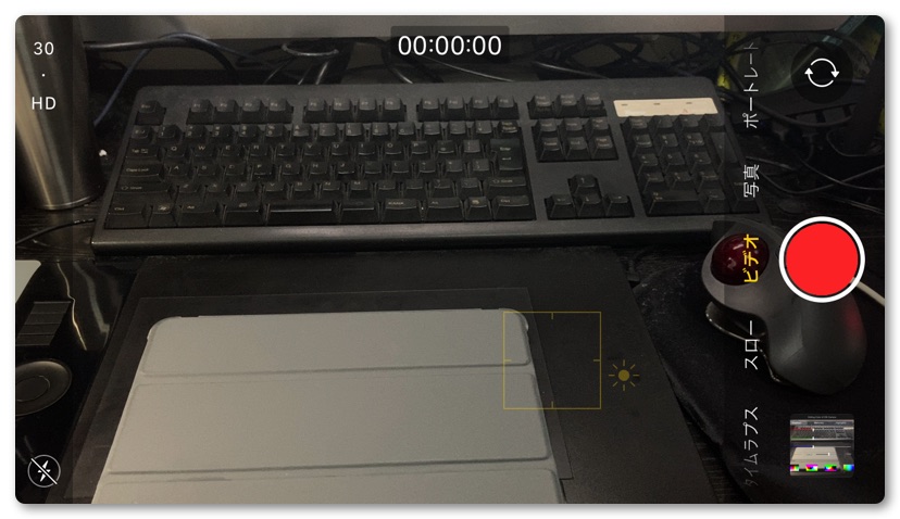 ただしiPhoneを接続して標準のカメラアプリを使うと撮影ボタン、撮影時間など不必要な情報が画面内に入り込みます。