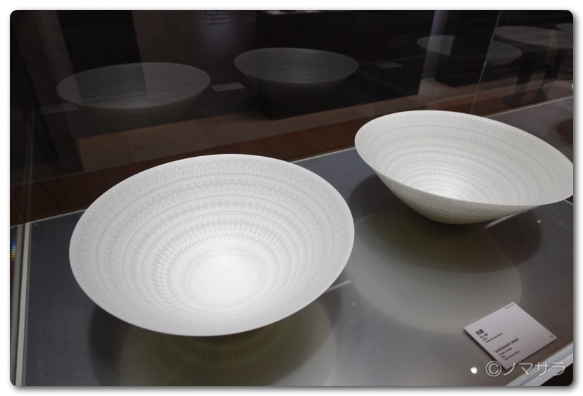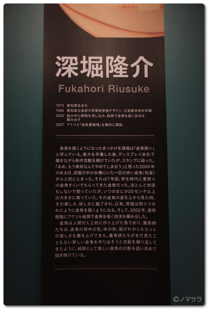 数々の素晴らしい作品が並んでいましたが、個人的な見どころは升の中に生きてるような金魚を描く深堀隆介氏やパンフレットの表紙にも取り上げられている超絶繊細な模様を書き込んである磁器の見附正康氏、ガラス細工の山本茜氏ら。他にも素晴らしい作品がたくさんありました。