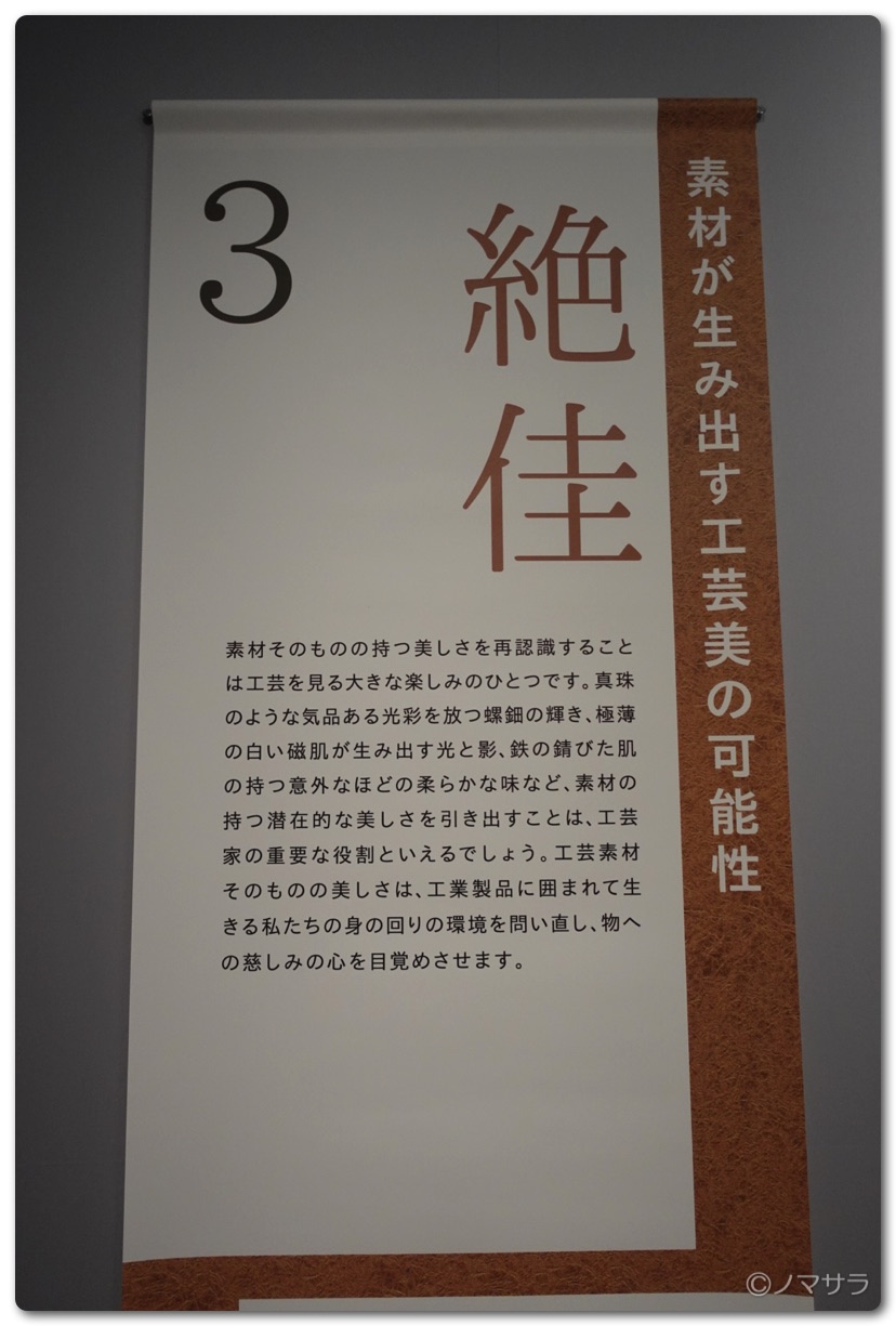 特別企画展 和巧絶佳展令和時代の超工芸は日本を代表する若手のアーティストをキュレーションした展覧会。絵画ではなくオブジェを作られているいわゆる「職人」にスポットを当てた展覧会になっています。