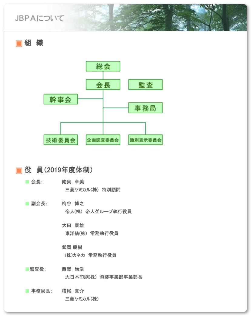 実は今回のレジ袋有料化は経産省の官僚、それに関わる企業の利権のために行われたと言われています。レジ袋の中で例外として認められているバイオマスプラスチック原料の団体である「JBPA 日本バイオプラスチック協会」の役員を見てみると会長には三菱ケミカルの特別顧問が、事務局長にも三菱ケミカルの方が就任しています。実は三菱ケミカルホールディングスの会長である小林氏と竹中平蔵氏、菅官房長官は2015年に某経営者会議などで登壇しており蜜月の仲と言われています。