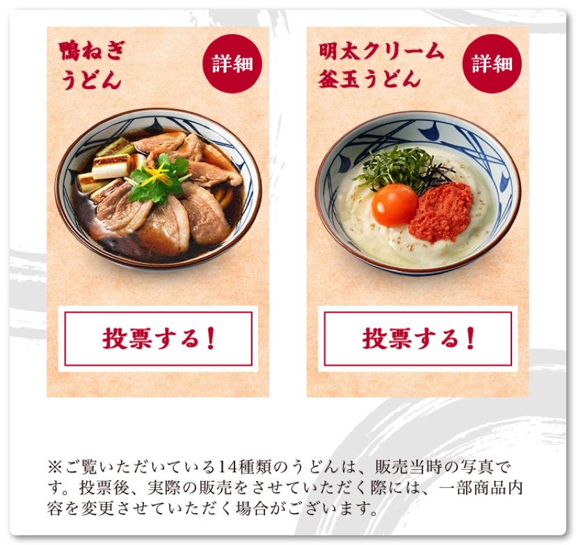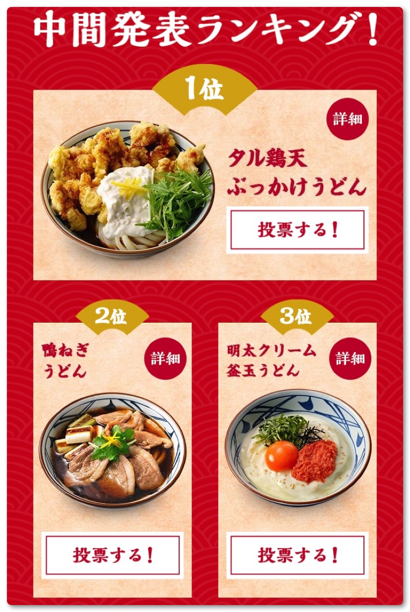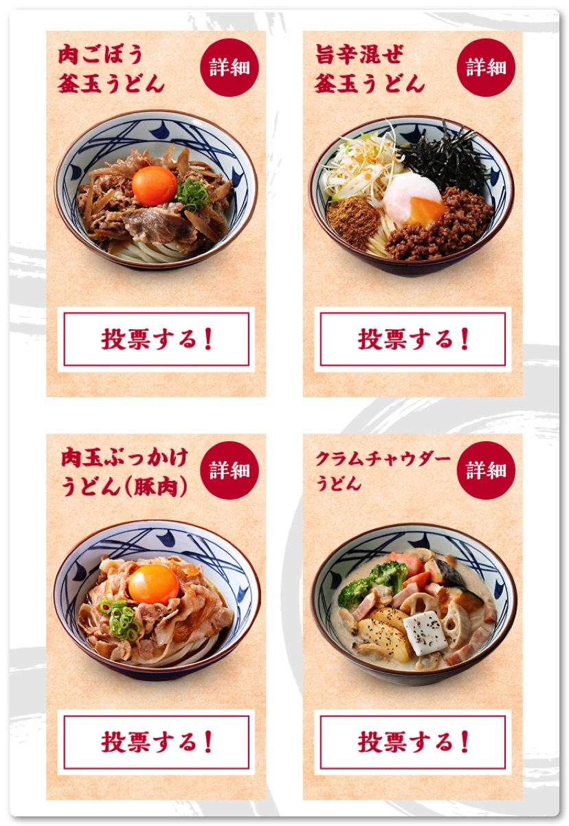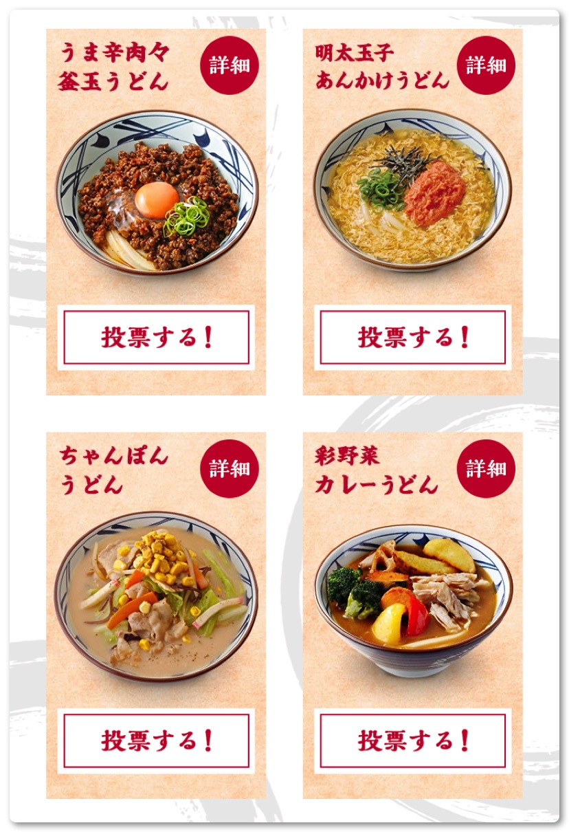 手軽に美味しいうどんを食べたい時は丸亀製麺へGO!そして月末までは人気投票もぜひ!