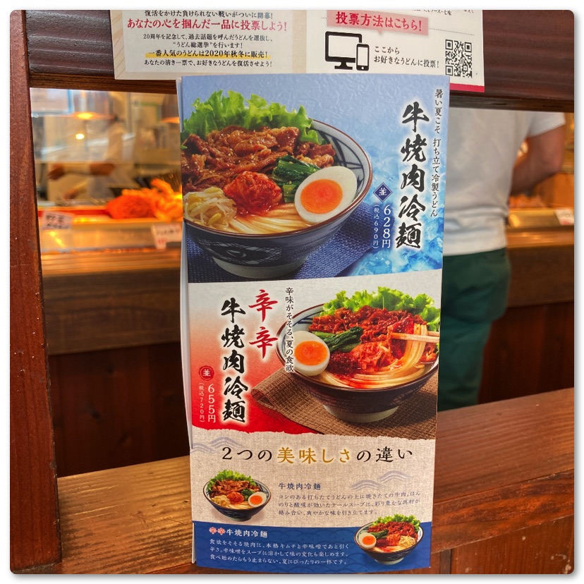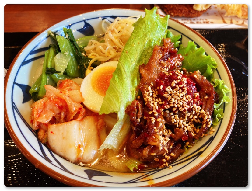 今は牛焼肉冷麺が期間限定で販売されています。これもめっちゃ美味しかったのでまたリピートするつもり。定番のシンプルなうどんも捨てがたいのですがこういった期間限定メニューも楽しみ。