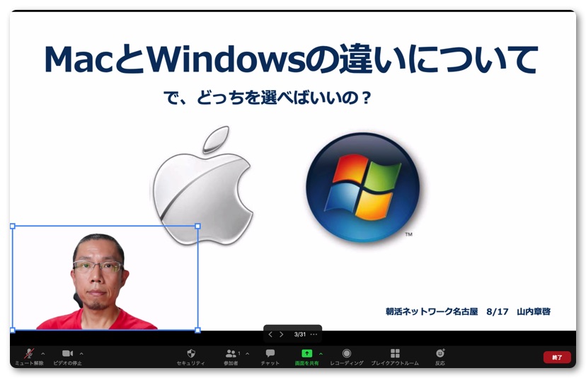 そんな中、今回のZoomのアップデートにより画面共有の機能で自分を画面内に映しながら資料を簡単に映すことが可能になり誰でも簡単にOBS Studioを使っていたときのような表現ができるようになりました。
