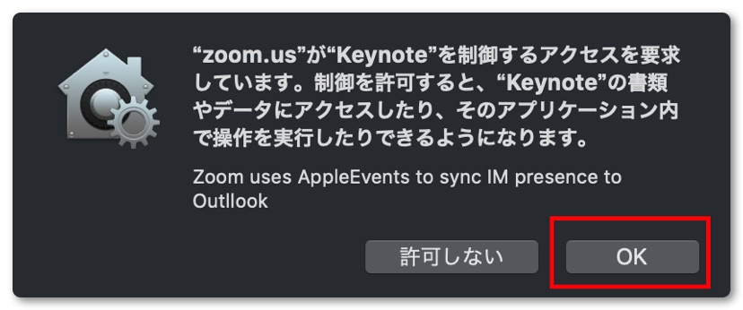初回のみKeynoteなどへのアクセスの許可を要求してきますのでOKをクリック。