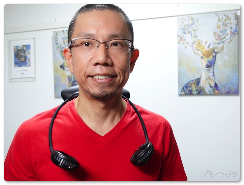 ここ数日は朝からすでに30℃を超えている日が続いており通勤時もすでに暑くこの首掛けファンが重宝します。