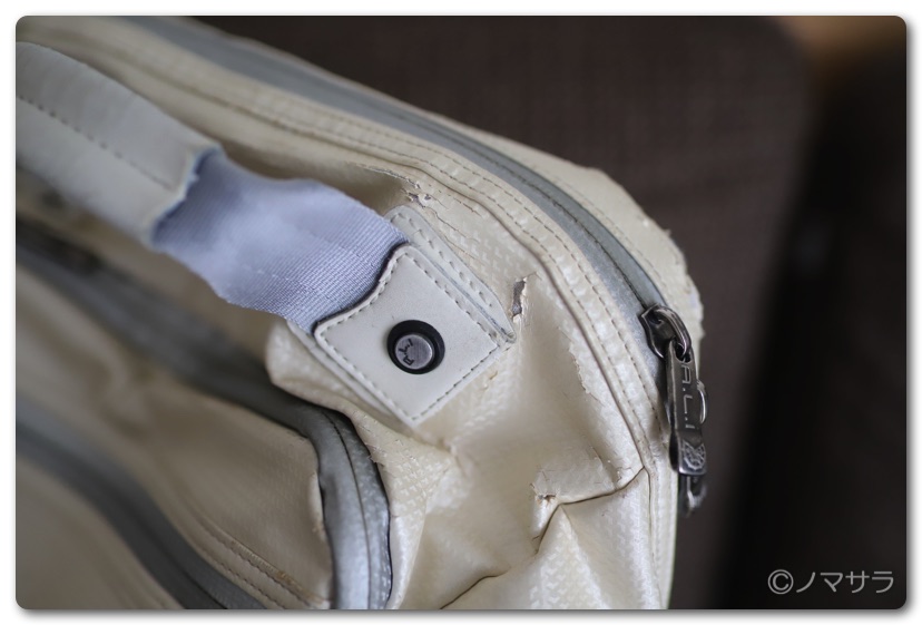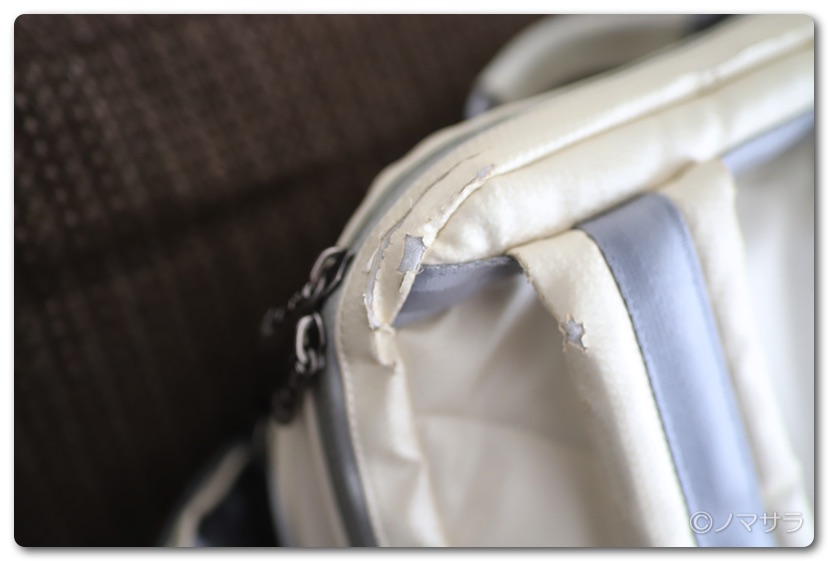 先日、サイドポケットのファスナーが閉まらなくなるという致命的な状態に。