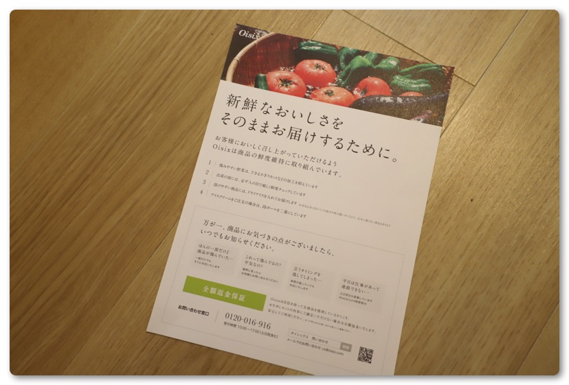 新鮮な野菜をはじめ、肉や魚、牛乳なども一緒に届き、多少割高ではあるものの、近くに新鮮な食材を買えるスーパーがないためとても助かっているとのこと。以前からOisixのサービスは気になっていたのでとりあえず「Oisix おためしセット」を注文してみました。税込1,980円で送料は無料。初めての方限定なので税込4,000円相当の商品が入っており相当お値打ち。