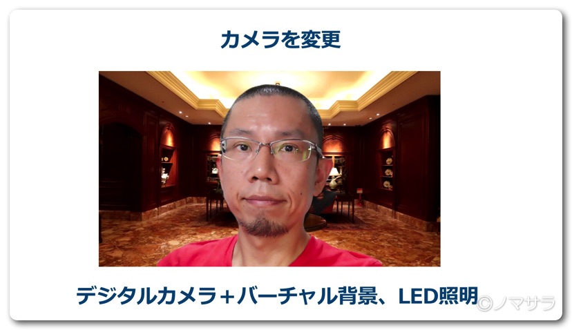 さらにカメラをデジタルカメラに変更しました。これにより一気に画質が上がり高精細かつ階調の高い画像になりました。ただしこの段階ではまだバーチャル背景を使っていました。