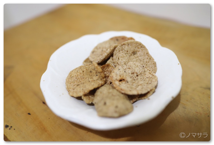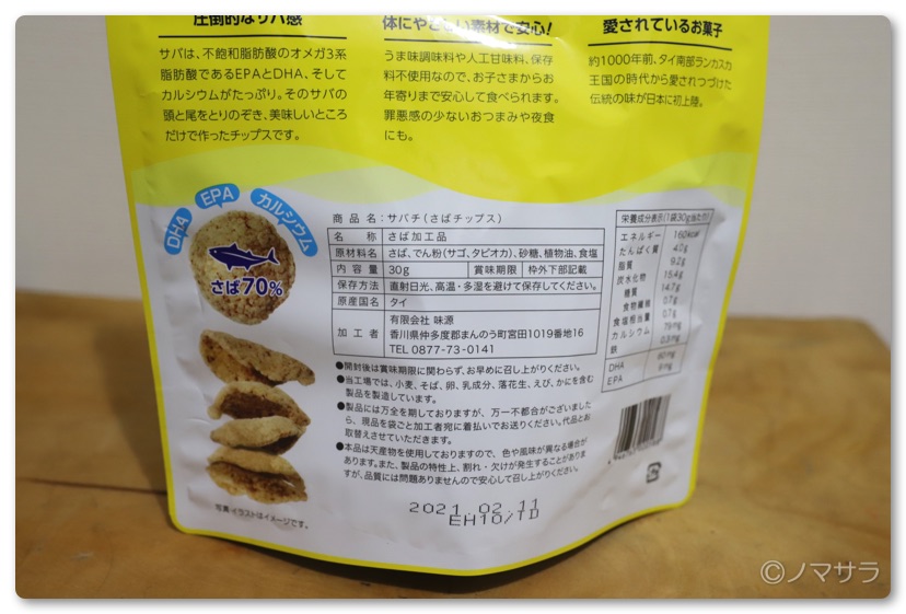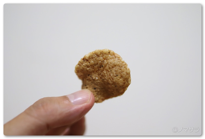 一見、えびせんのような見た目と香りで実食するとえびせんとイカフライをミックスしたような味わい。ほんのり塩味とともにサバ特有の甘みがあります。
