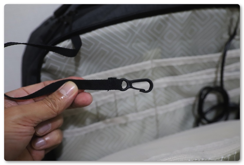 その他、カラビナが付いた紐があり、鍵などを付けておけば迷子になることはありません。使い方によっては意外と便利かも。