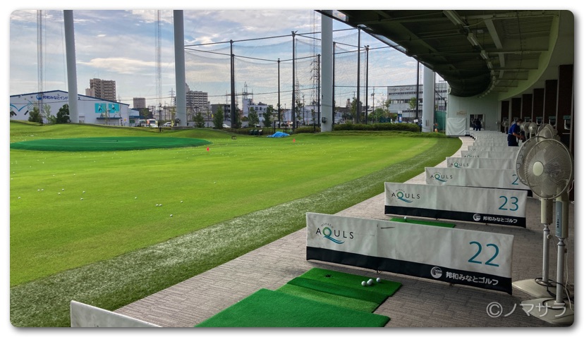 邦和みなとゴルフは幅は特別広くはありませんが奥行きがあり、250ヤード飛ばしてやっと奥のネットに届くかどうか。打球をしっかり見極められるのでロングヒッターでもしっかり練習できます。