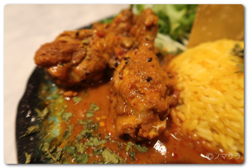 チキンは圧力鍋で煮込まれた手羽元が3つでホロホロと肉が口の中でほぐれます。