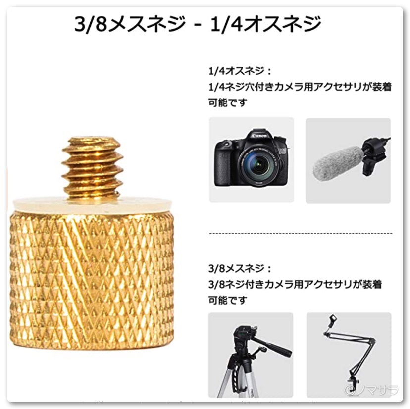 変換アダプタはAmazonて千円弱で販売されていますので簡単に手に入ります。2個入なので余った分はライトスタンドなどにカメラを取り付ける際にも使えます。