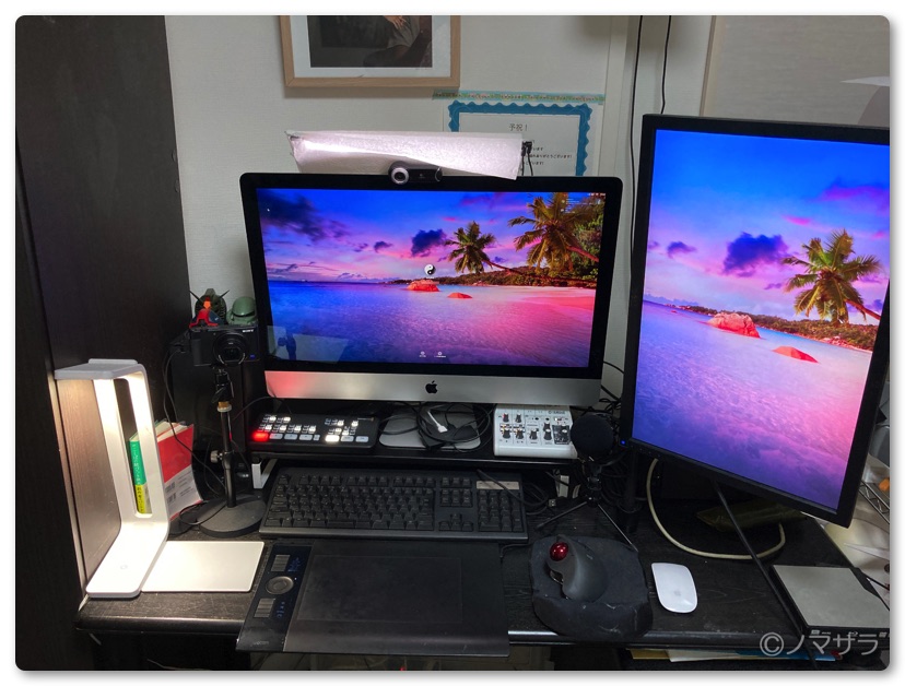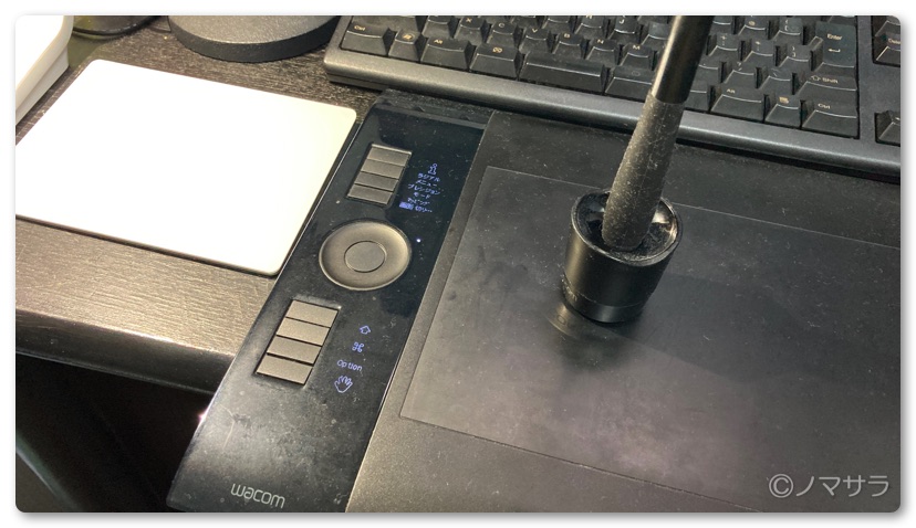 かなり前に購入したWacom Intuousをキーボードの手前に置いて使っています。特に何の問題もないため最新のものに買い替える必要性は感じていません。絵を描いたりしないので利用頻度は低いものの写真のレタッチをする際には必須のアイテムとなります。