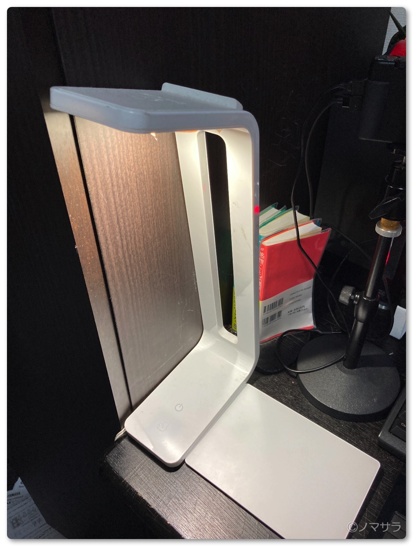 顔の横に当てる補助ライトとしてiPhoneでスキャンができるSNAP LITEを使っています。メインのライトはライトボックスのLEDを流用しておりサブとしてSNAP LITEを使っています。サブモニターと合わせて都合3箇所からライトを当てることにより顔の影を減らすことができかなり見栄えが良くなります。
