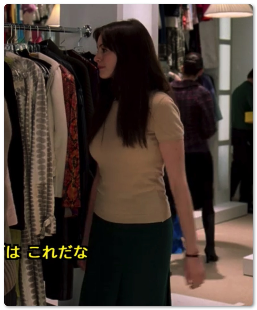 アン・ハサウェイ演じるアシスタントアンディ。最初のファッションは本当にイマイチ…。