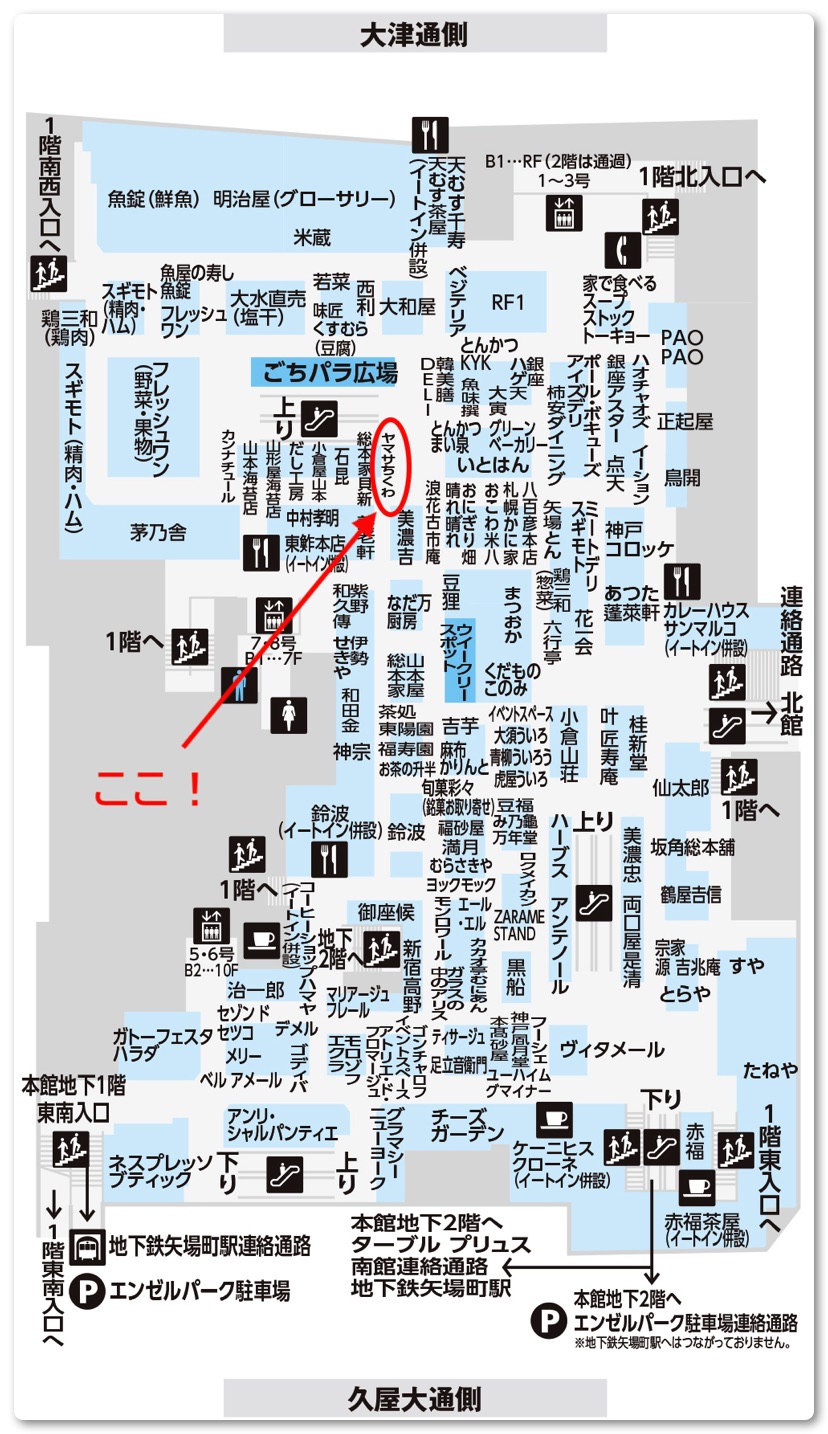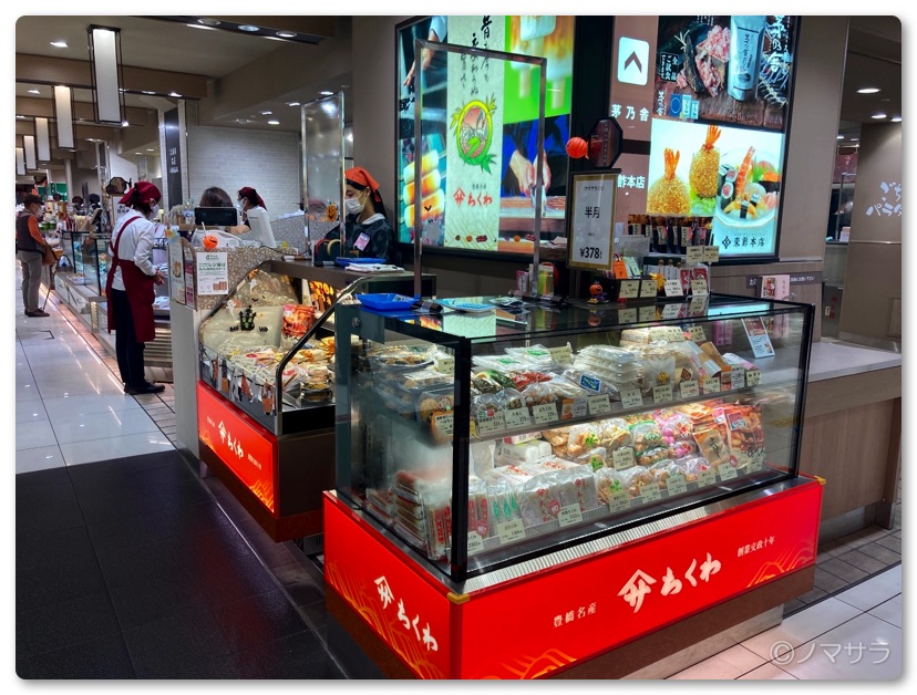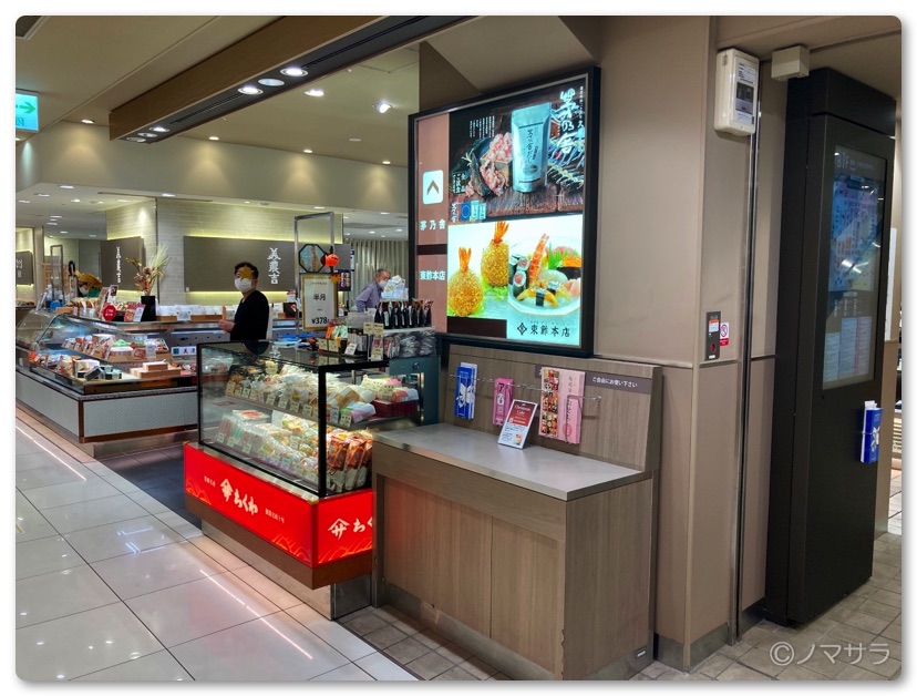「ヤマサちくわ」の店舗はごちパラ広場があるエスカレーターの反対側にあります。