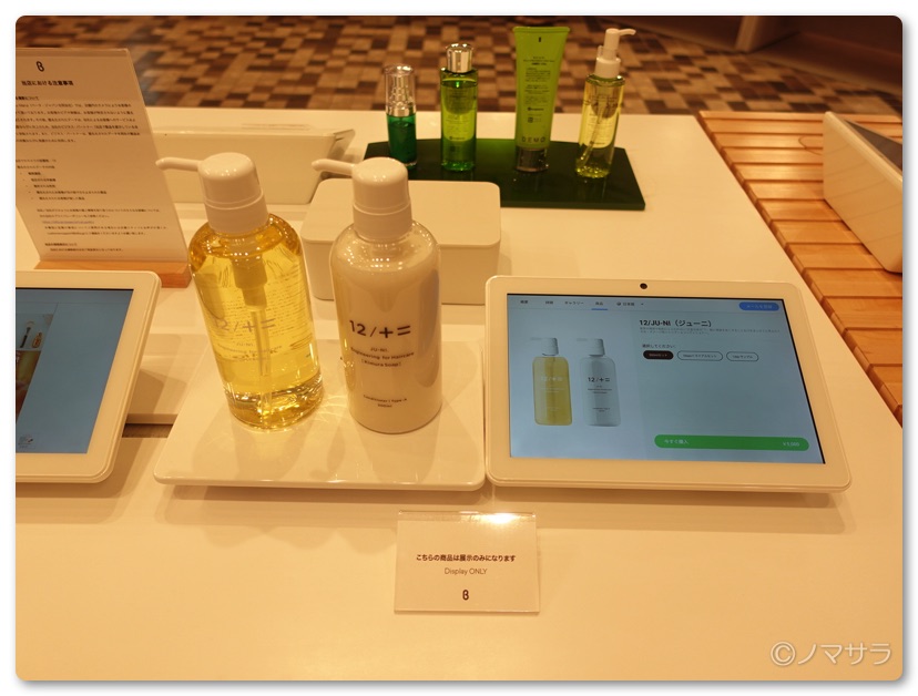 区画ごとにタブレットが配置され、動画での商品案内のほか、EC上で商品を注文できるものもあります。その場で在庫があり購入できるものは僅かでオンラインで買えるものが1/3ほど、あとは展示しているだけのまさに「β版」で購入することはできません。おそらくは今後販売されるとは思いますが、ここでの反応を見て商品化を決める判断材料を集めているのかもしれません。