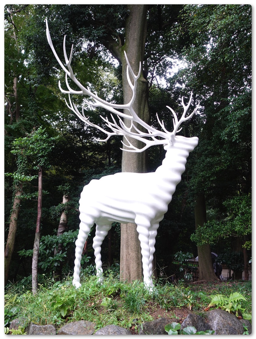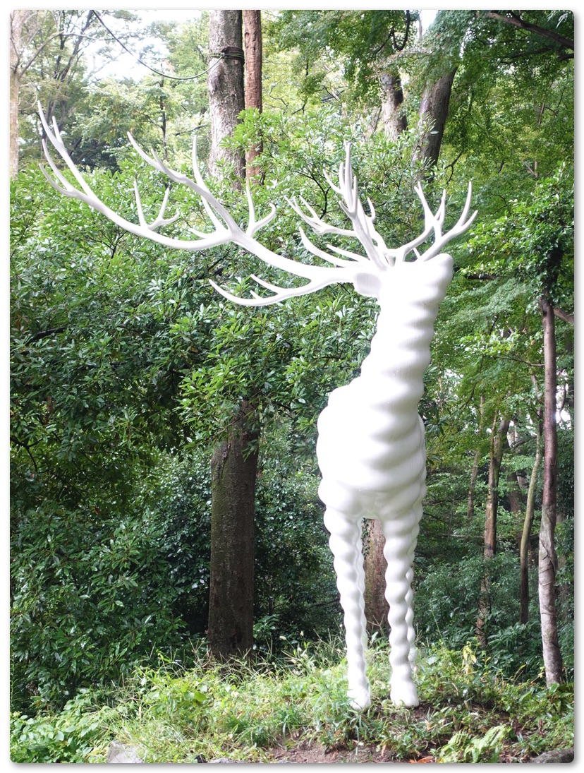その後も現代美術家の名和晃平氏、ニューヨークを拠点に活動する画家・松山智一氏、木彫で動物を表現した「ANIMALS」シリーズで知られる彫刻家の三沢厚彦氏の作品を見て回りましたがウロウロと迷いつつやっとのことでそれぞれの作品に辿り着きました。明治神宮がとてつもなく広くて手元で見ていたマップの縮尺と距離感が掴めていなかったのも迷った原因のひとつ。熱田神宮程度の大きさかと思っていたのですが倍以上の面積がありました。