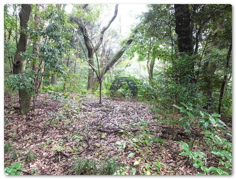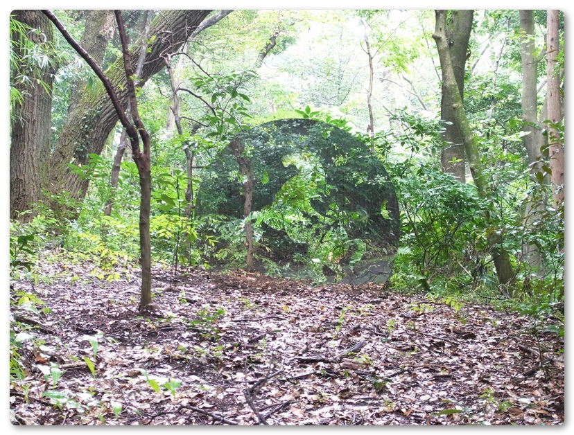 事前に「天空海闊」のイベントのマップをチェックしてあったのでそれを見つつアート作品のある場所へ移動しました。はじめはステンレスミラーやシェイプドキャンバスによるインスタレーションを制作する船井美佐氏の作品を見に行ったのですが、これがまたわかりにくい…。誘導看板は何もなく作品は森の中にポツンとあるだけ。おそらく事前に情報を知っていない限り気づかないと思われます。
