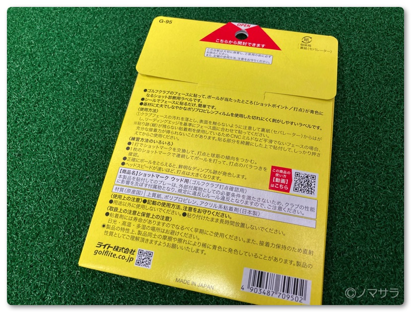 ステッカーは弱粘性になっているためクラブに貼っても簡単に剥がせます。このステッカーを使ったことによりクラブフェイスの中央から約ボールひとつ分外側に当たっているということ判明。どうやらいつのまにか少しずつボールから離れて立ちすぎていたみたいでボール1個分近づいてアドレスしてスイングしたらほぼ真っ直ぐ勢いよく飛ぶようになりました。