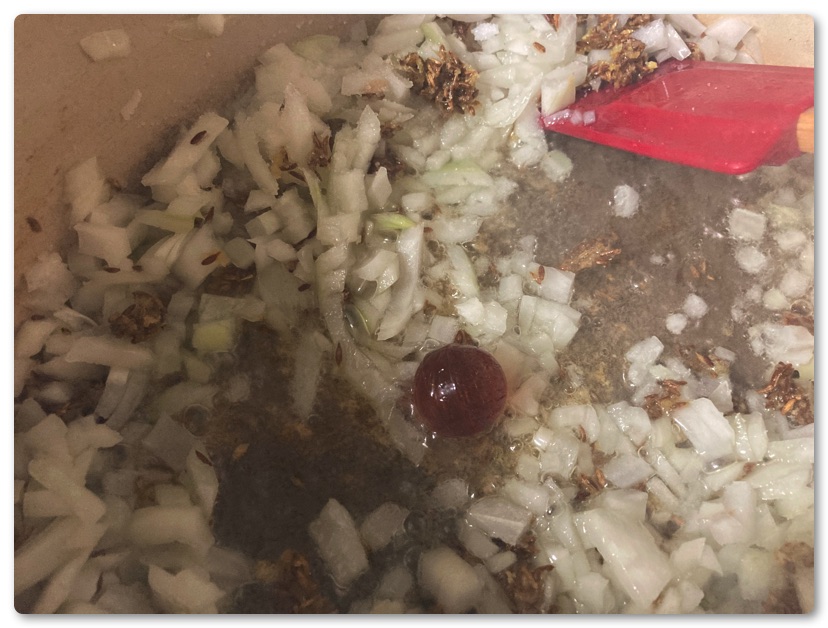 カンロ飴は玉ねぎのみじん切りを炒める際に使います。カンロ飴を隠し味として使うことで味に深みをもたらす飴色玉ねぎが手早く仕上がるとのこと。初めてなのでとりあえず恐る恐る一個入れて炒めてみました。