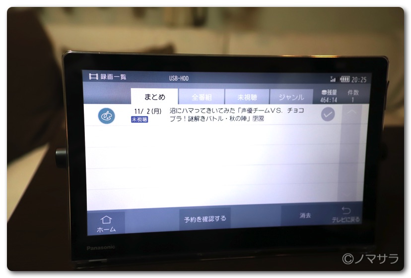 チューナーにUSB-HDDを繋げば番組を録画することができます。ただしWチューナーではないので裏番組録画はできません。今回はSeagateの1TBのHDDを購入して接続しましたが簡単に認識されました。圧縮して録画されるため460時間以上番組を録画できます。これだけあればまず足りなくなることはないでしょう。