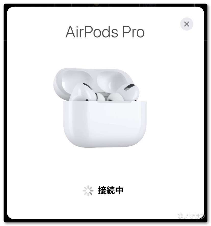 iPhoneとの接続はAirPodsProの蓋を開けたら自動で認識し、接続のアイコンをタップするだけ。本当に便利。