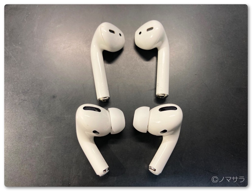 イヤホンの装着感はシリコンパッドがあるためAirPodsProの方が格段に上。