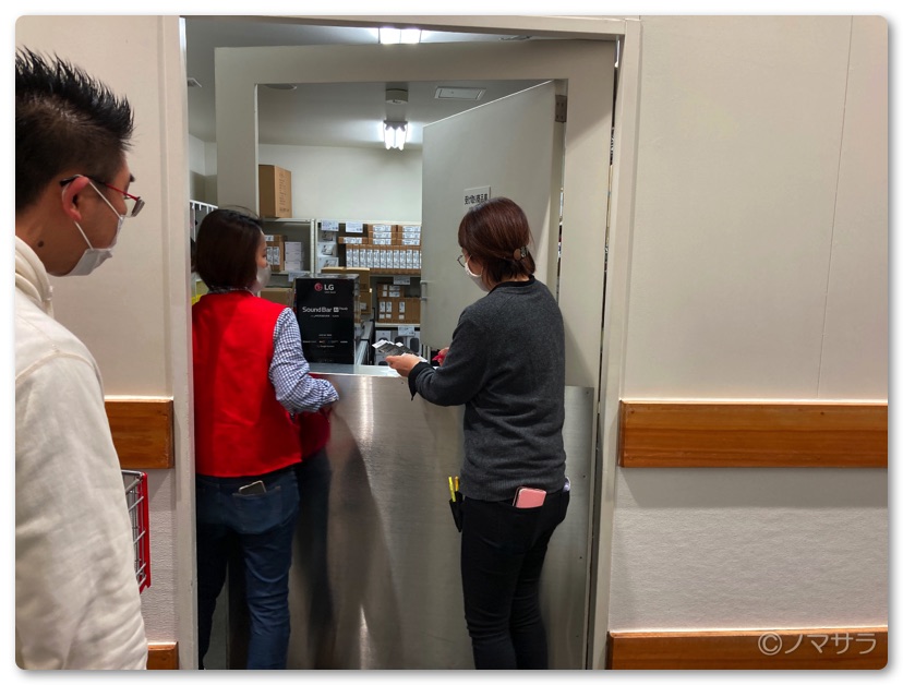 到着すると程なく現品を渡してもらえました。受付の横にはバッファローのハードディスクを10個カゴにいれてる転売ヤーとみられる男性がいました。