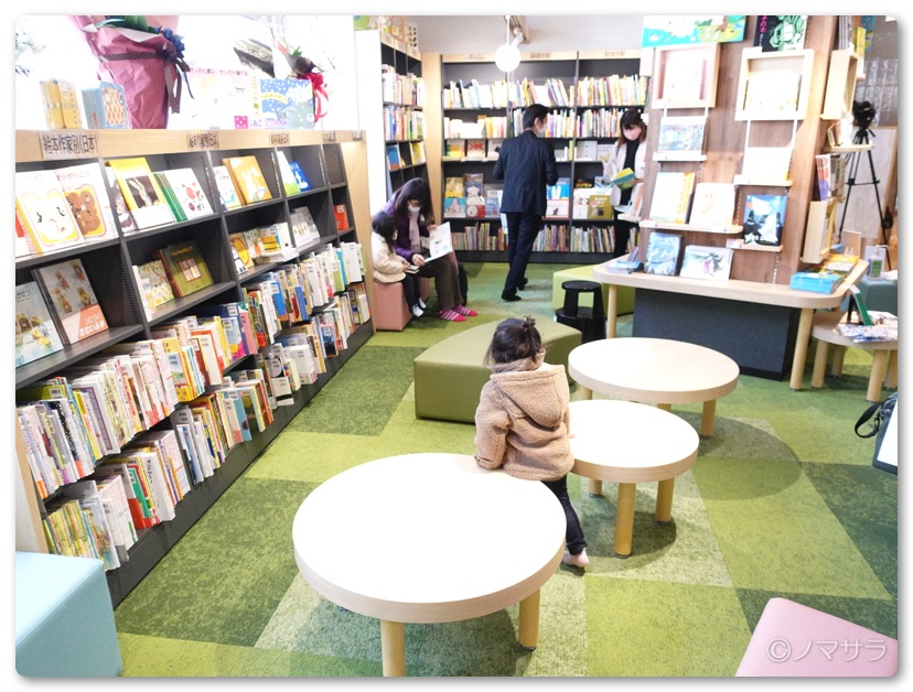 また小さなお子さんと過ごせるスペースがあり、子どもを遊ばせながら親は読書をしたり読み聞かせをしたりすることができます。