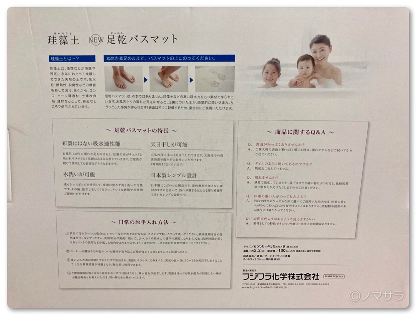 ※ニトリやカインズの珪藻土バスマットにアスベストが混入しており自主回収になっていますが、このフジワラ化学のバスマットは一切入っておらず安心してお使いいただけます。