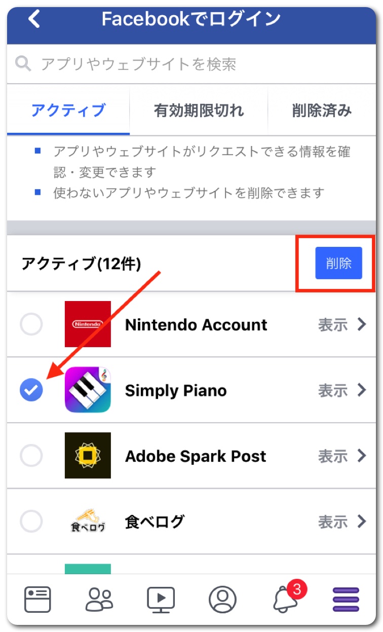 Facebookアプリの削除方法