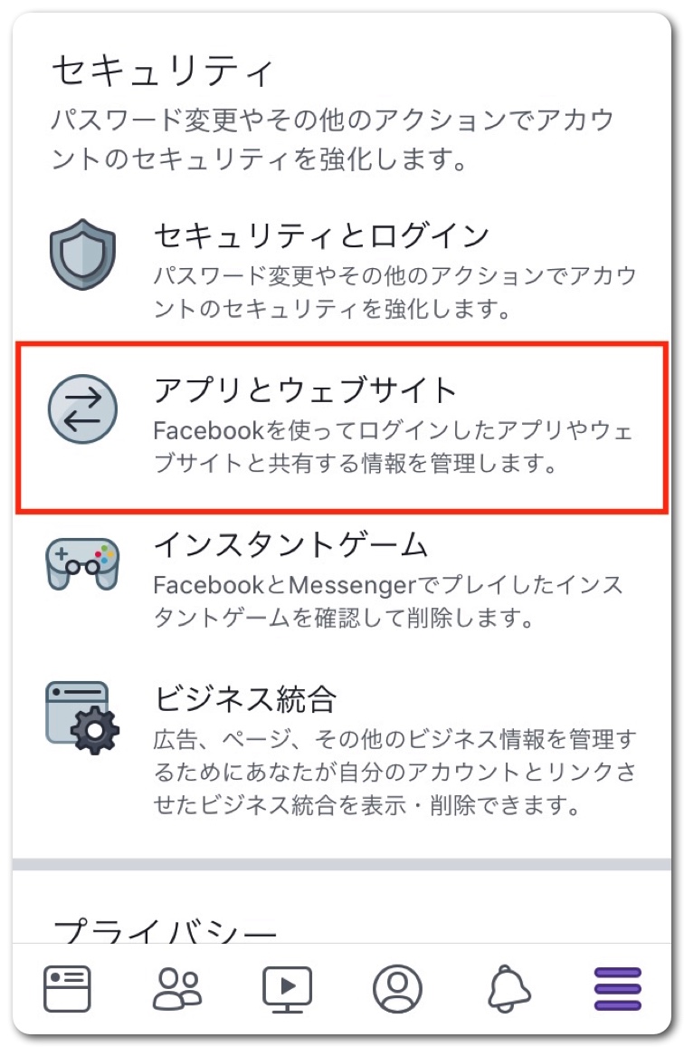 「アプリとウェブサイト」をタップ