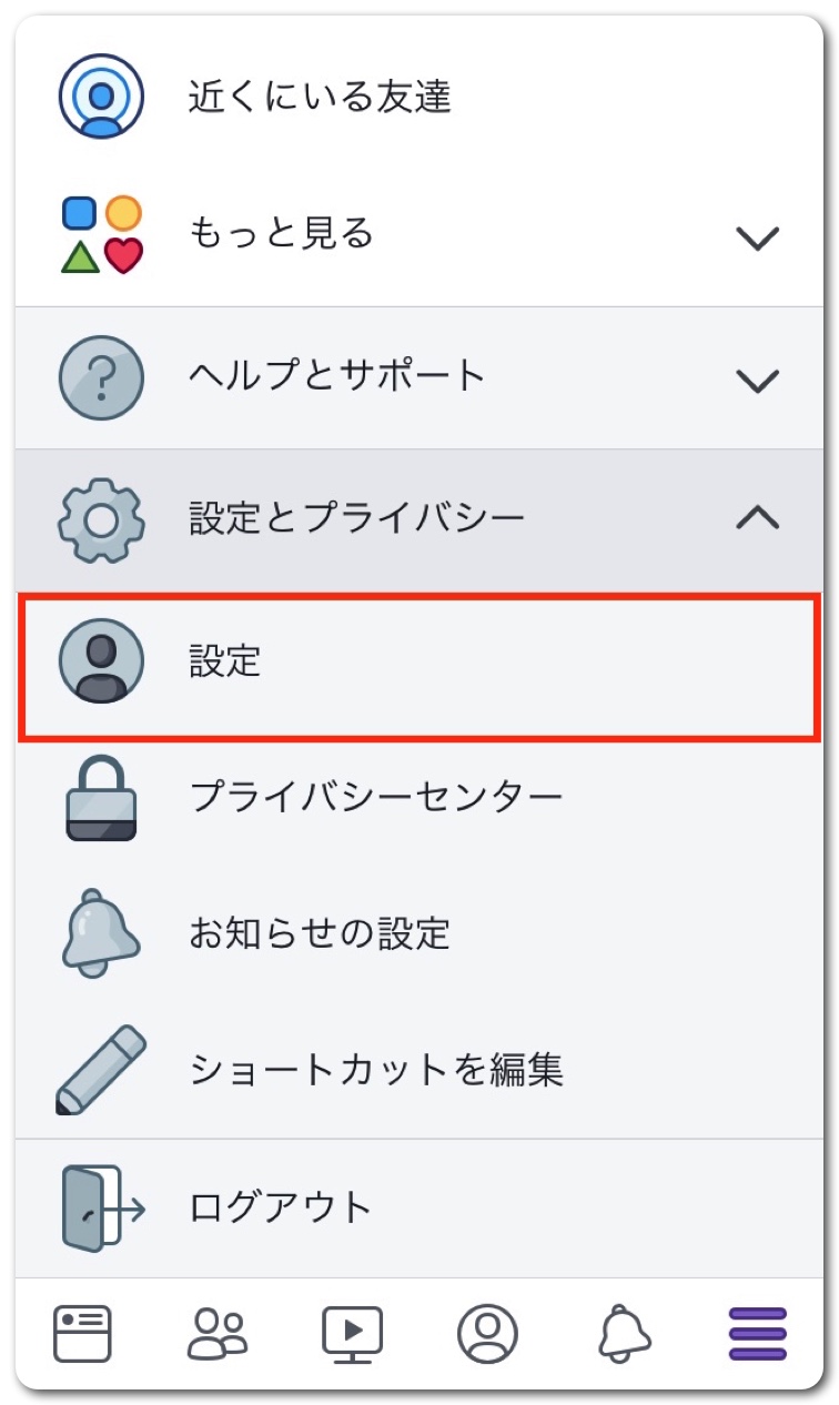 「設定とプライバシー」の中の「設定」をタップ