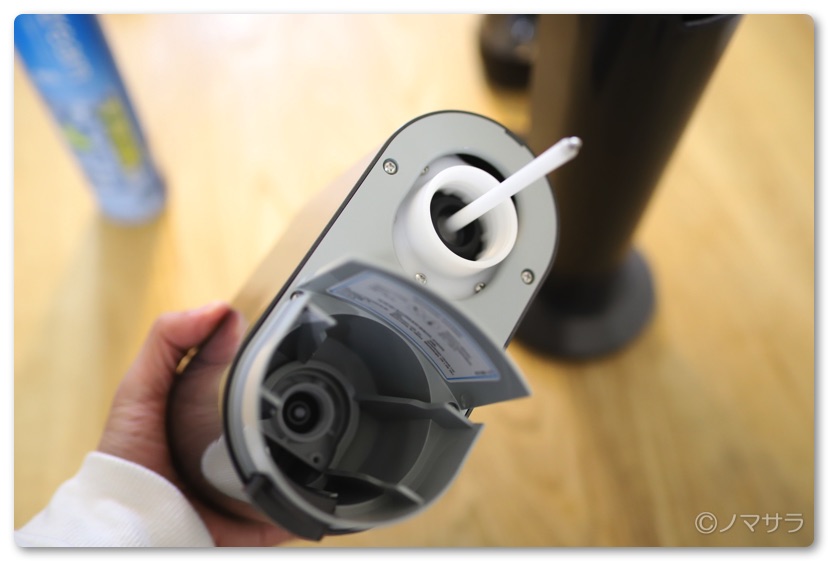 使用方法は簡単。炭酸シリンダーを本体に差し込み、付属のペットボトルを装着してボタンを押すだけ。