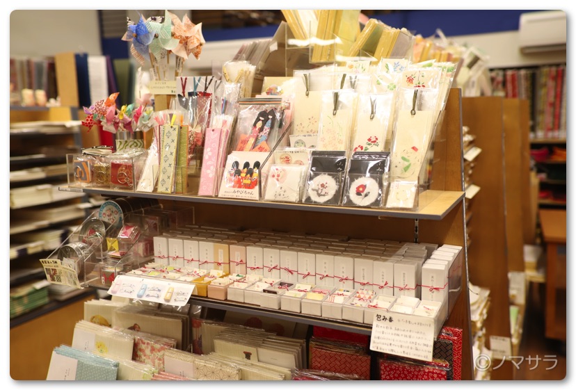 店内には折り紙やはがき、メッセージカードなどをはじめ朱印帳、レターセットなどが豊富な品揃えで並んでいます。東急ハンズやロフトとは違ったオリジナルの商品もあり、ここぞという時には重宝します。