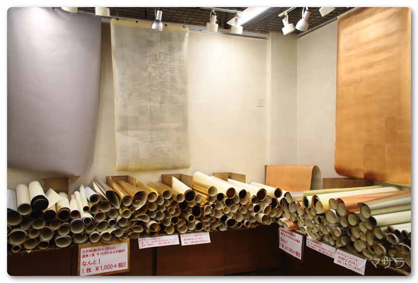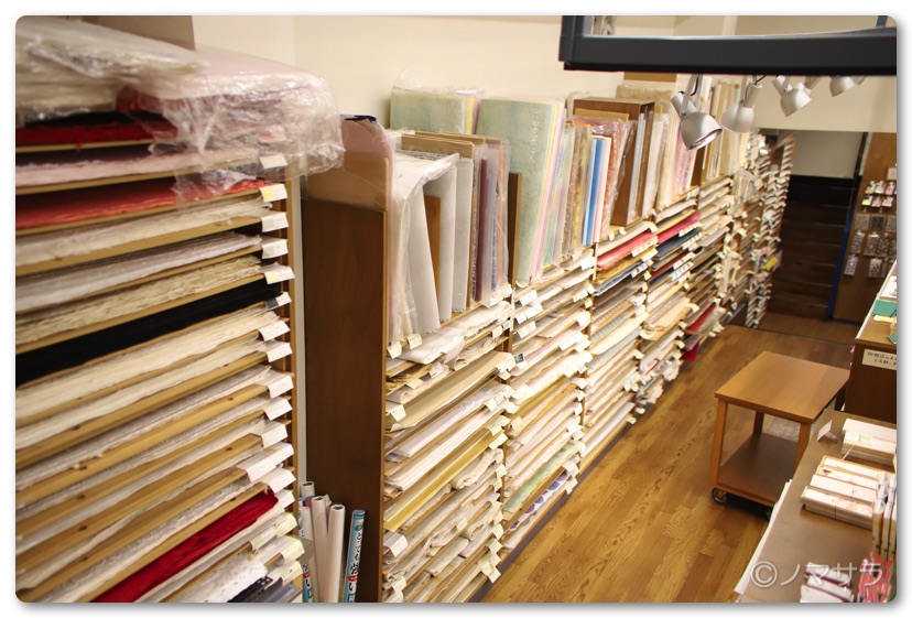 そのほか、手漉き和紙なども相当な種類があり、おそらくほとんどの方の要望に応えられるはず。2階には特殊な紙が並んでおり見るだけでも楽しめます。