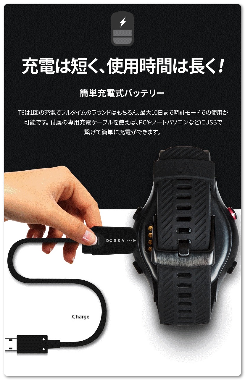 T6はコースとグリーンの攻略はもちろん、バンカーやハザードの位置、および、前、後ろまでの距離など様々な情報をひと目で確認して簡単に避けることができます。また画面をタップすることにより現在地からその地点までの距離を知ることができるため、どのクラブを使えばいいかがすぐにわかります。