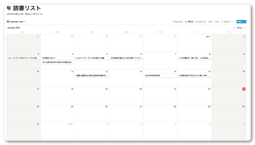 またカレンダー形式で表示することもできますのでいつどの本を読んだかがひと目でわかります。仕事であればプロジェクトの項目をデータベース化して進捗状況を確認することも容易になります。保存したデータは複数人数で共有することもできるため効率がめちゃくちゃ上がるはず。上記のカレンダー形式のほか、ガントチャート形式などもあり納期の確認などもひと目で確認できます。