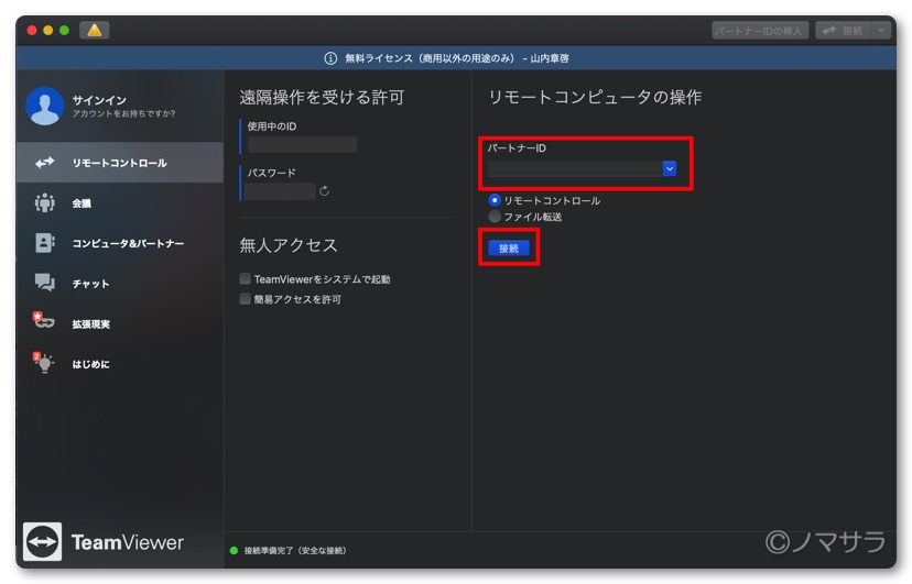 「TeamViewer 」はお互いのパソコンにアプリを入れることにより遠隔地にある端末にアクセスできるようになります。リモートの方法は簡単。操作する人が操作したいパソコンの「TeamViewer」のパートナーIDを入れ接続ボタンを押しパスワードを入れればすぐ繋がります。