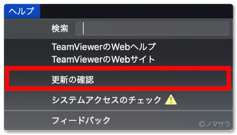 なお、「TeamViewer」はお互いに最新版にアップデートしておかないと接続されない場合があります。接続エラーになる場合はおそらくこれが原因なので即座にアップデートしましょう。最新版かどうかはメニューバーの「ヘルプ」から「更新の確認」をクリックすればわかります。最初、父親の「TeamViewer」が古いバージョンで接続ができずアップデートしてもらうのに相当手間取りました…www。