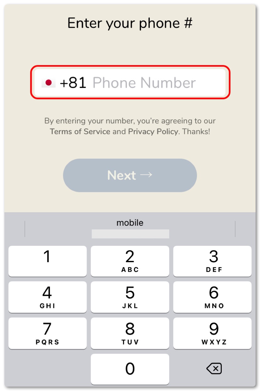 招待されたらまずアプリを起動させて自分の電話番号を登録します。