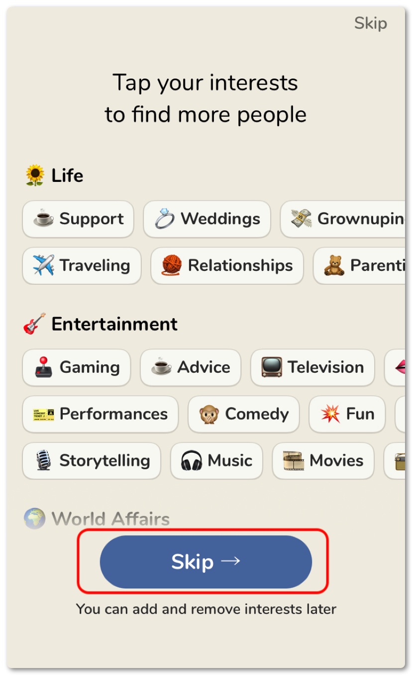次に興味のあるカテゴリーを選択していきます。何も選ばなくても構いません。