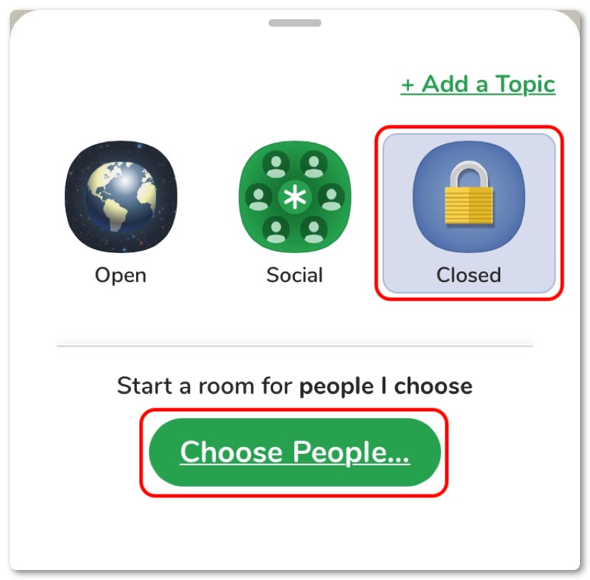 ルームは誰でも参加できる「Open」、繋がりがある人だけ参加できる「Social」、指定した人だけしか参加できない「Closed」の3種類に分かれます。
