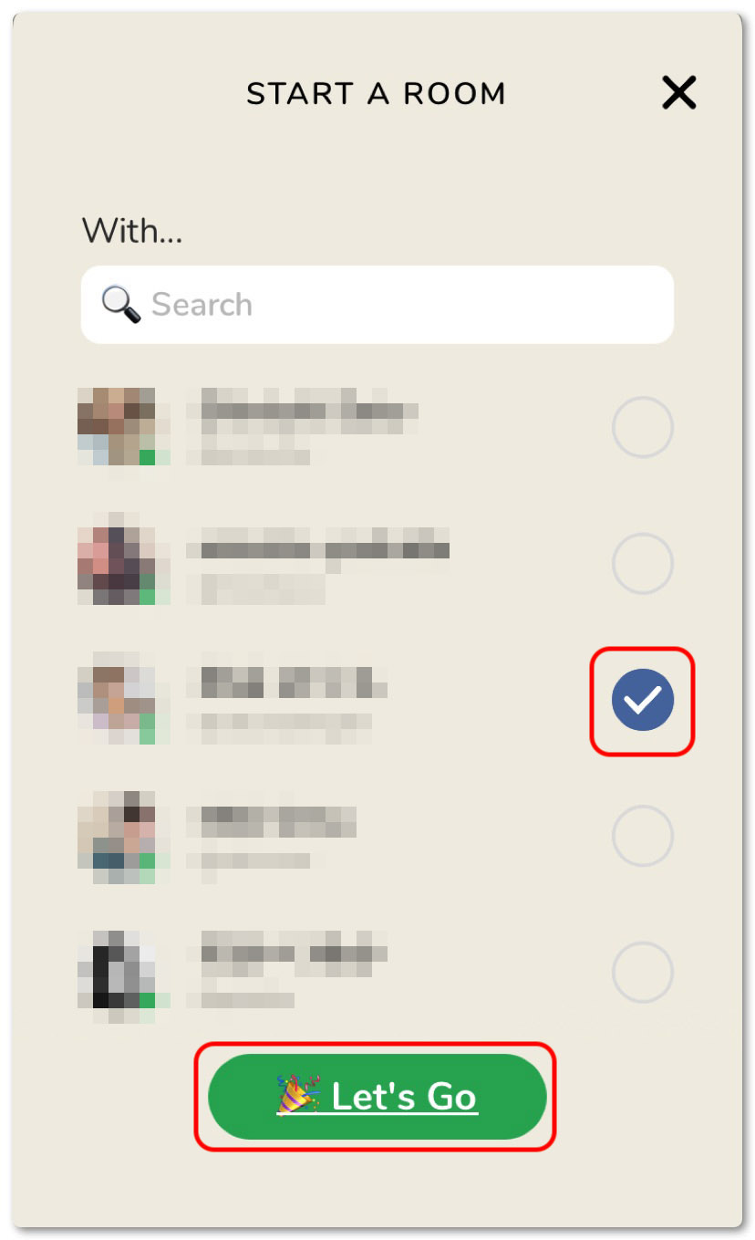 「Closed」の場合は「Choose People…」をタップして参加するメンバーを選んでから「Let’s go」をタップします。